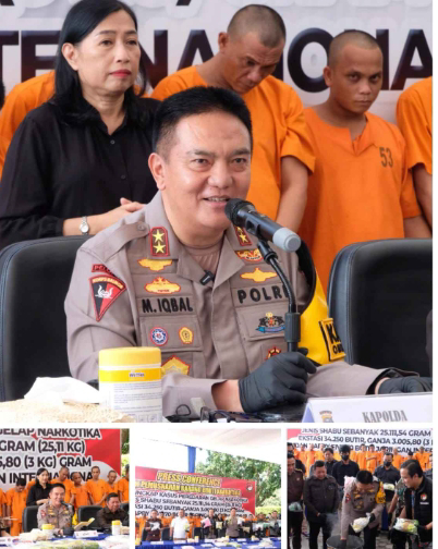 Lebih lanjut ia menjelaskan bahwa pada Mei-Juni 2024 total barang sitaan, yakni 25,1 Kg sabu, 34.250 butir pil ekstasi, 3 Kg ganja kering dan 70.000 butir pil happy five. Kemudian, ditangkap 25 tersangka, di mana 11 di antaranya adalah jaringan internasional.