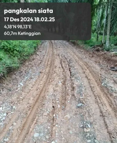P. SIATA-/Kepala Desa Pangkalan Siata "beri kado tahun baru jalan rusak berlumpur tebal". Jalan rusak parah, itu hasil dari pembangunan proyek perkerasan jalan dengan sumber dana desa (DD) T.A 2023 & 2024.